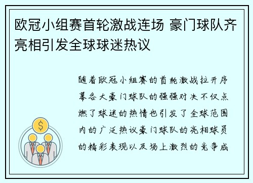 在欧洲足坛的最高舞台上,欧冠决赛无疑是最具震撼力和话题性的赛事之一。本赛季,巴黎圣日耳曼与拜仁慕尼黑这两支世界级豪门球队即将在欧洲之巅展开巅峰对决。两队在本赛季欧冠赛场的表现可圈可点,既有过硬的技术实力,也有丰富的比赛经验。本篇文章将从四个方面详细阐述本场欧冠决赛的看点,包括两队的阵容实力、战术打法、关键球员的表现,以及历史背景和赛事影响力,力求为读者呈现一场精彩绝伦的足球盛宴。1、两队阵容的对比...